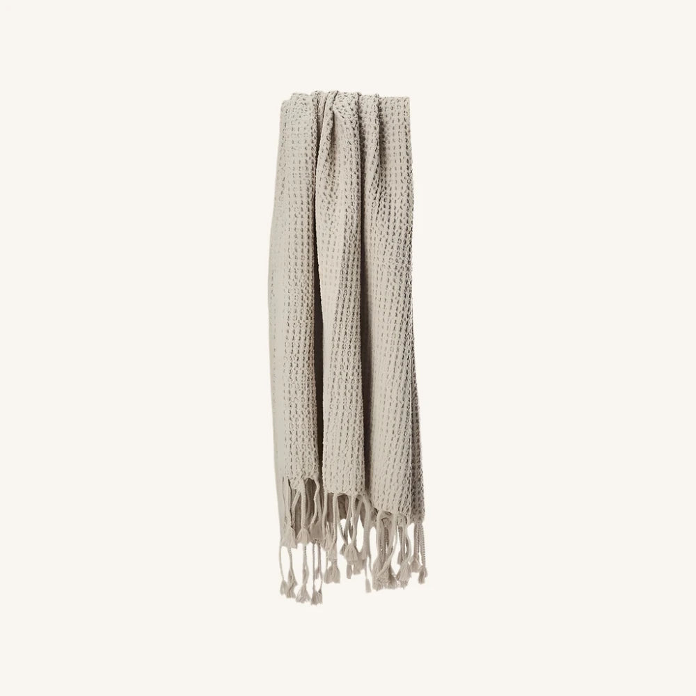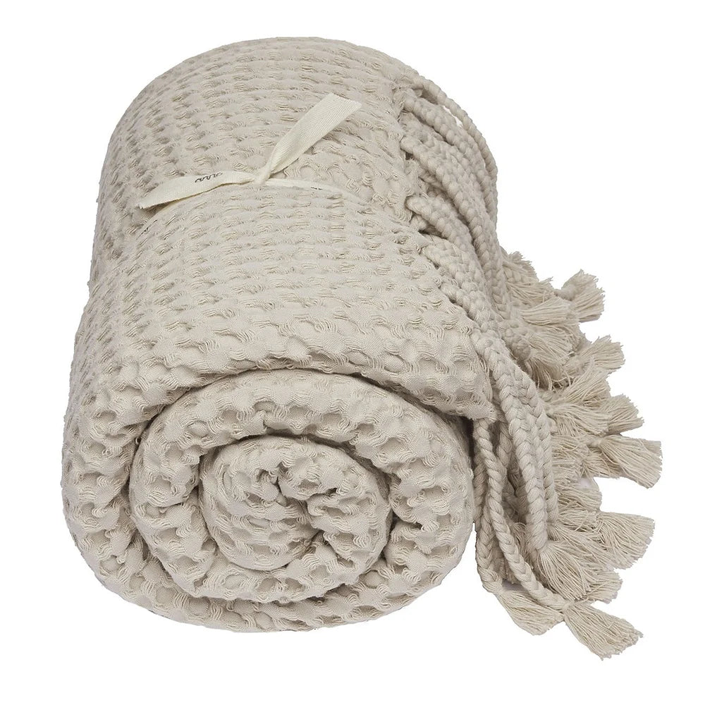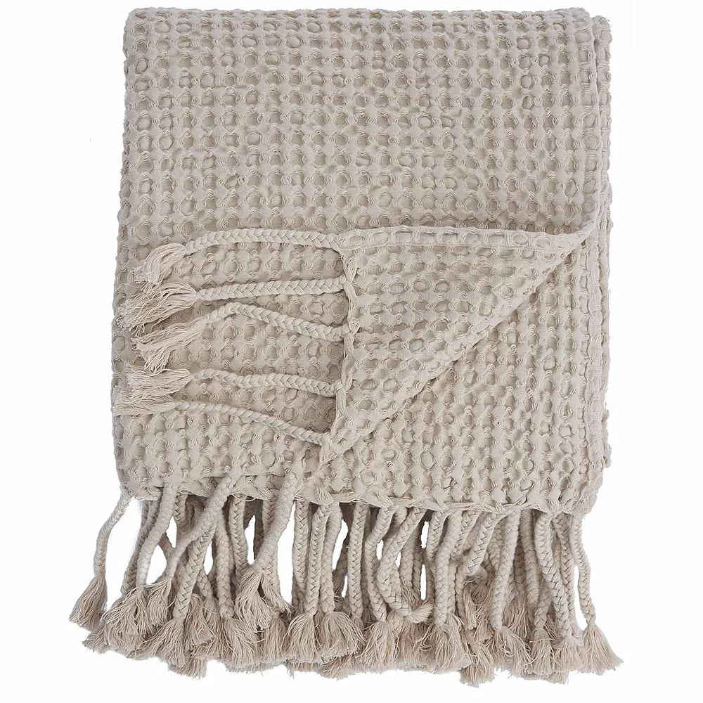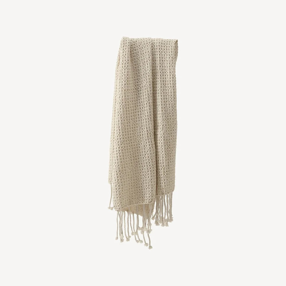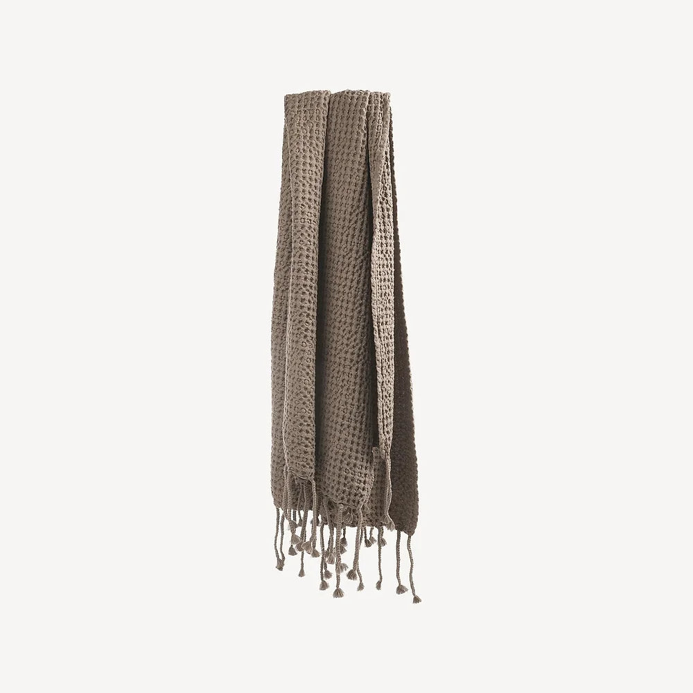 The luxuriously large Puro throw is made of washed, organically grown cotton waffle. The throw has hand-braided 15cm tassels on both ends, giving it a great casual look.
