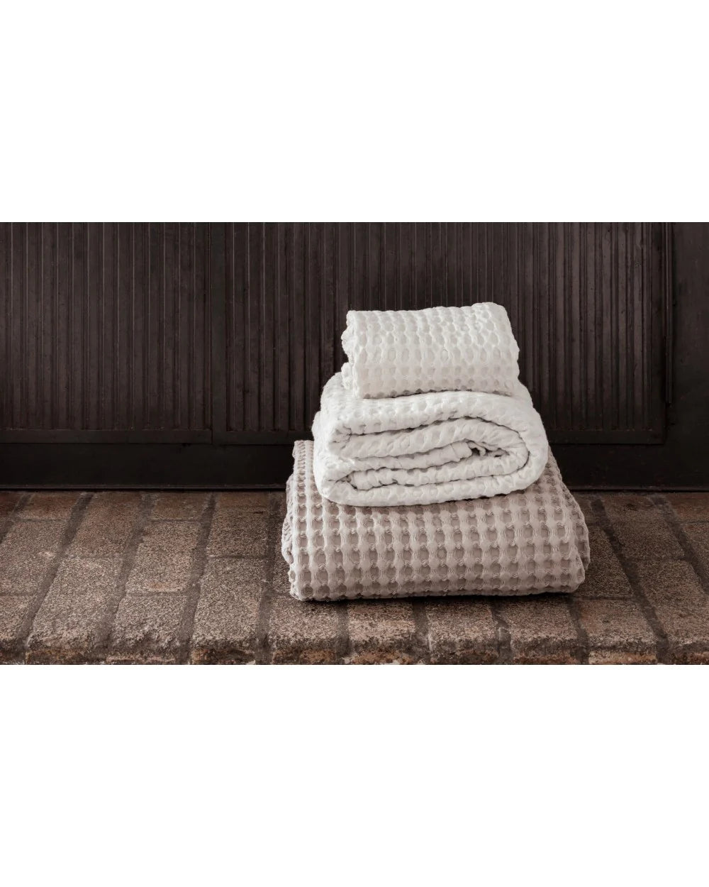 The Puro waffle towel is made of 100% organic cotton and it feels light and pleasant against the skin. Pre-washing gives the cotton an amazing softness and the towel its nice and relaxed look.