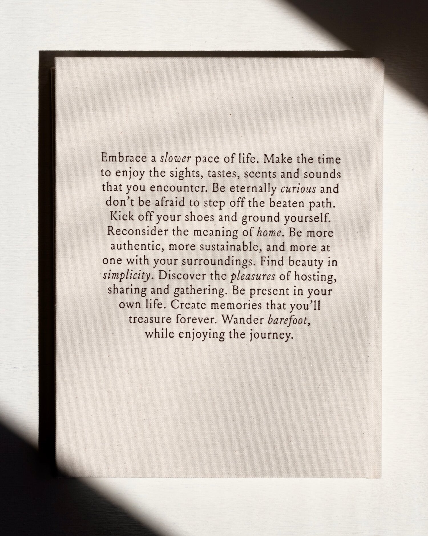 In this book, Natalia Swarz explores the concept of barefoot living through her personal lens, exploring the destinations where she has found herself living her best unrushed life: the Mediterranean coast, island life, the countryside, Latin America and in the city. The pages are filled with inspirational photography and interviews, inviting you inside homes, guest houses and boutique hotels belonging to those who are embracing a barefoot, slower pace of life.