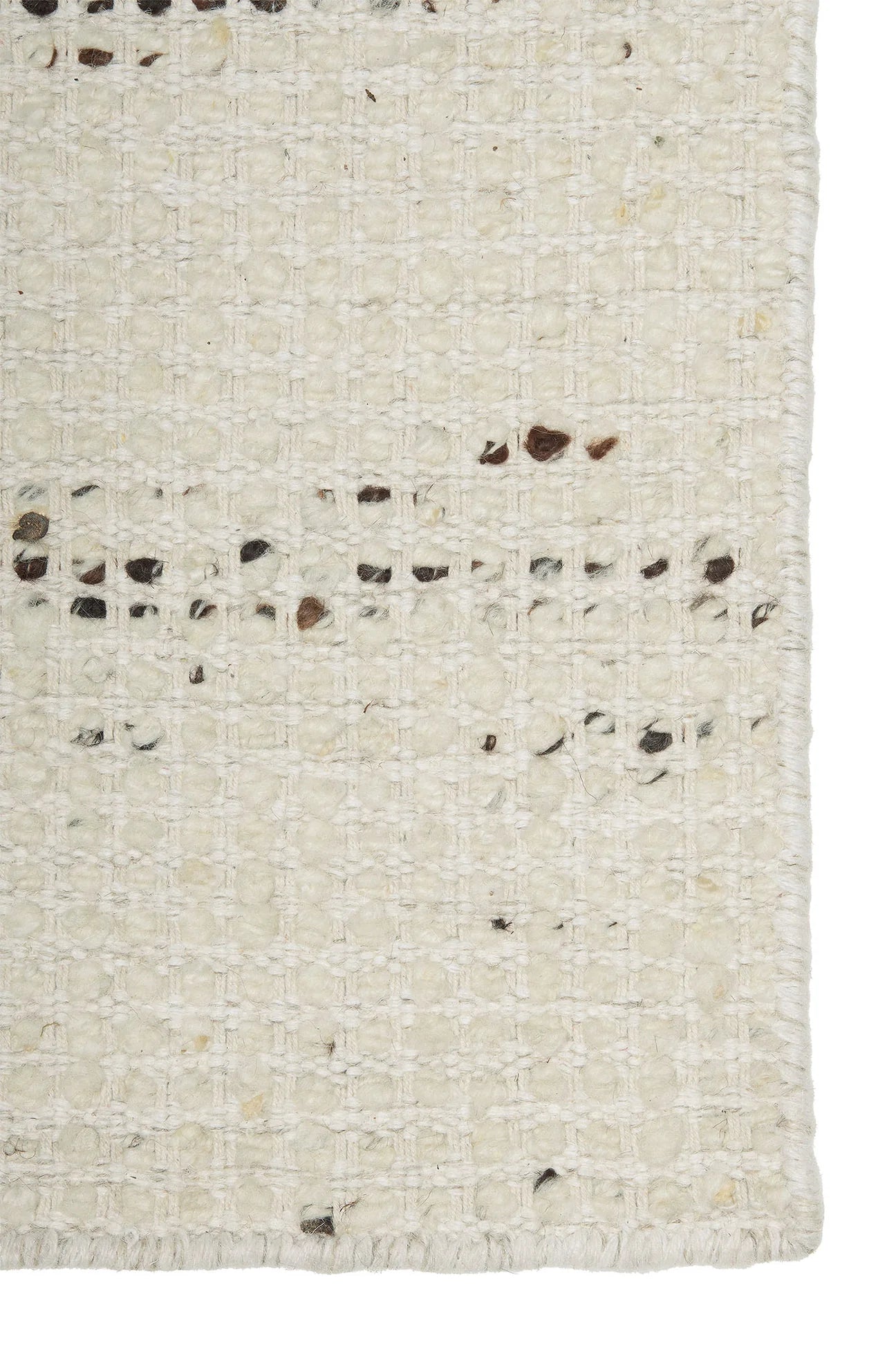 Kinuski is a handwoven structured wool rug with cotton blended in and a cotton warp. The three-dimensional surface is formed from thick wool yarn. The lively texture highlights the variations in the natural shades of wool, making each rug unique.