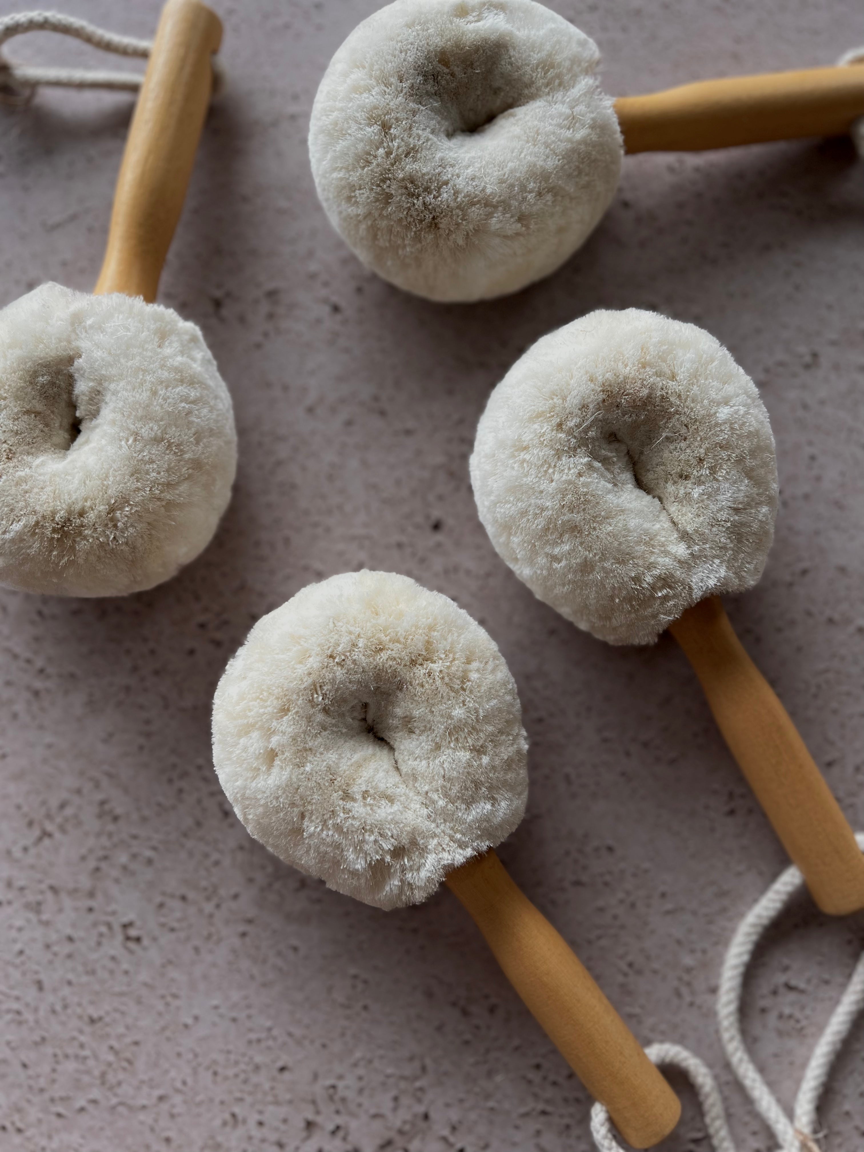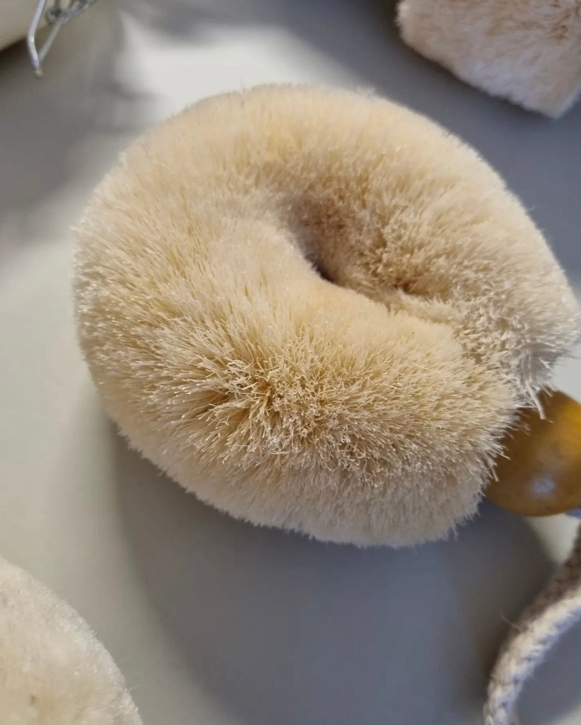 Handmade from natural jute, a soft vegetable fibre which is ideal for the sensitive areas of the face and décolletage.