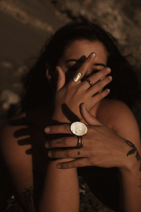 All Rosa & Linde pieces are made in ceremony. With intentions of creating something timeless and lasting. Something raw yet refined. Golden and warm earthy tones meet in wood and metal. A hard earthen element becomes soft and smooth in hand sculpted shapes. Made to be worn and loved. To become a part of stories and memories.